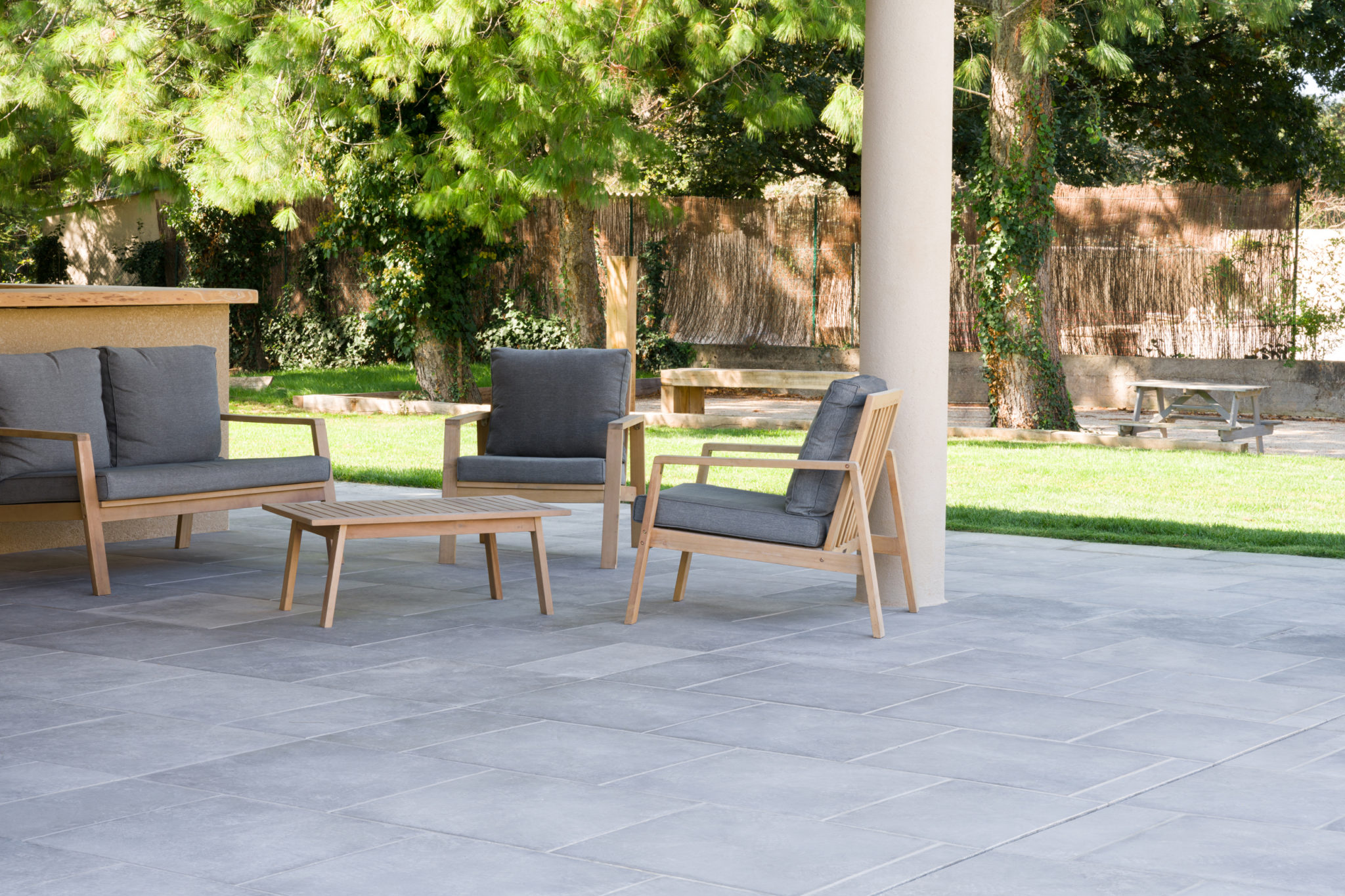 La variété des formats, des coloris, et l’élégance des dallages, pavés et accessoires Fabemi font naître des décors aux lignes