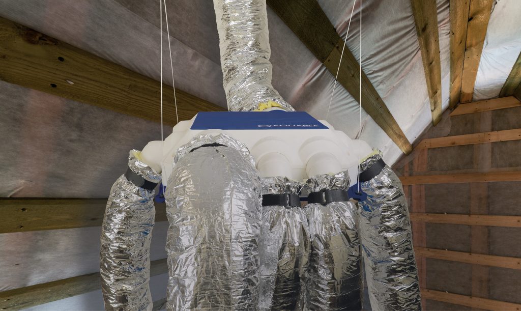 Le système d’accrochage rapide des gaines est doté d’un joint pour garantir une étanchéité parfaite du réseau. Les colliers « Quick’Gaine » assurent le maintien des gaines sans outil.